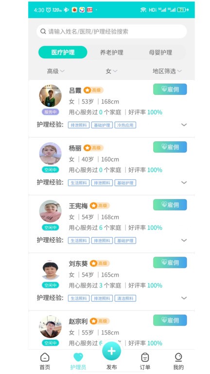 護(hù)小理軟件是一款專門用于護(hù)理的軟件,其中包含了海量的專業(yè)護(hù)工,都可以幫助用戶照料加重的老人,并且還能實(shí)時(shí)進(jìn)行下單,解決當(dāng)前的困難,每個(gè)護(hù)工都是經(jīng)過(guò)專業(yè)的培訓(xùn),所以用戶可以放心在這里挑選需要的工作人員,有需要的用戶可以來(lái)下載使用。