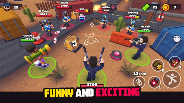 快樂地帶游戲是一款卡通主題的大逃殺類游戲,在游戲中,玩家需要使用各種武器進行射殺,包括手榴彈以及轟炸機等,玩家需要殺死所有的反對力量,開啟瘋狂的戰(zhàn)斗,不斷調(diào)整自己的戰(zhàn)斗策略,以求生存,游戲提供了單人模式以及多人模式,場景設(shè)計色彩多樣,給玩家?guī)砹吮M情戰(zhàn)斗的快感。