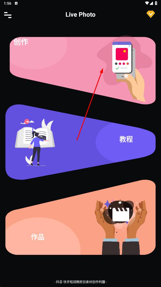 2、在主界面點擊“創(chuàng)作”區(qū)域,進入開始創(chuàng)作頁面。