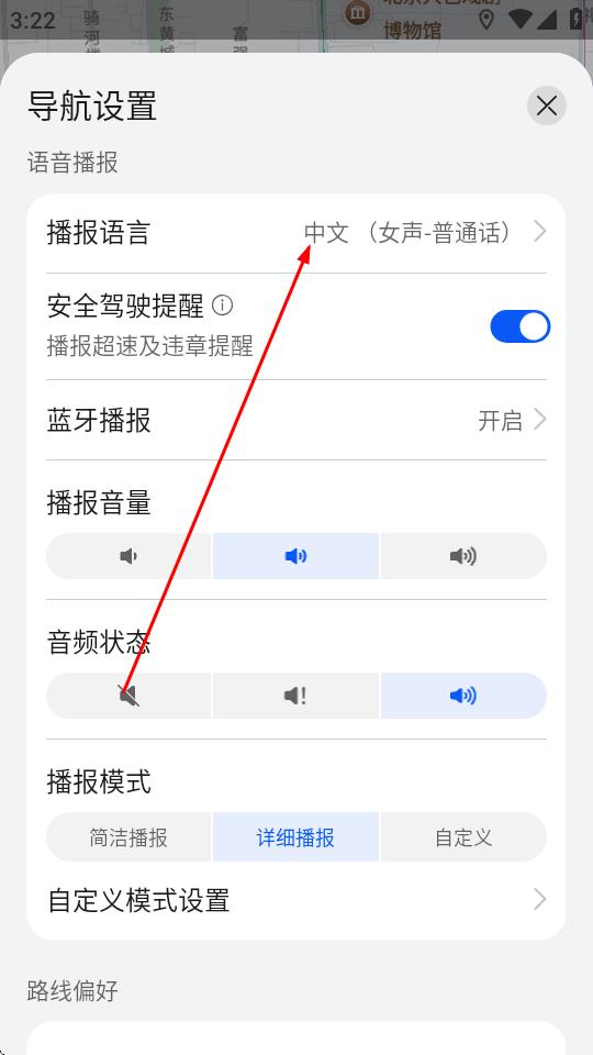 4、在導(dǎo)航設(shè)置頁面中,點擊播報語言。