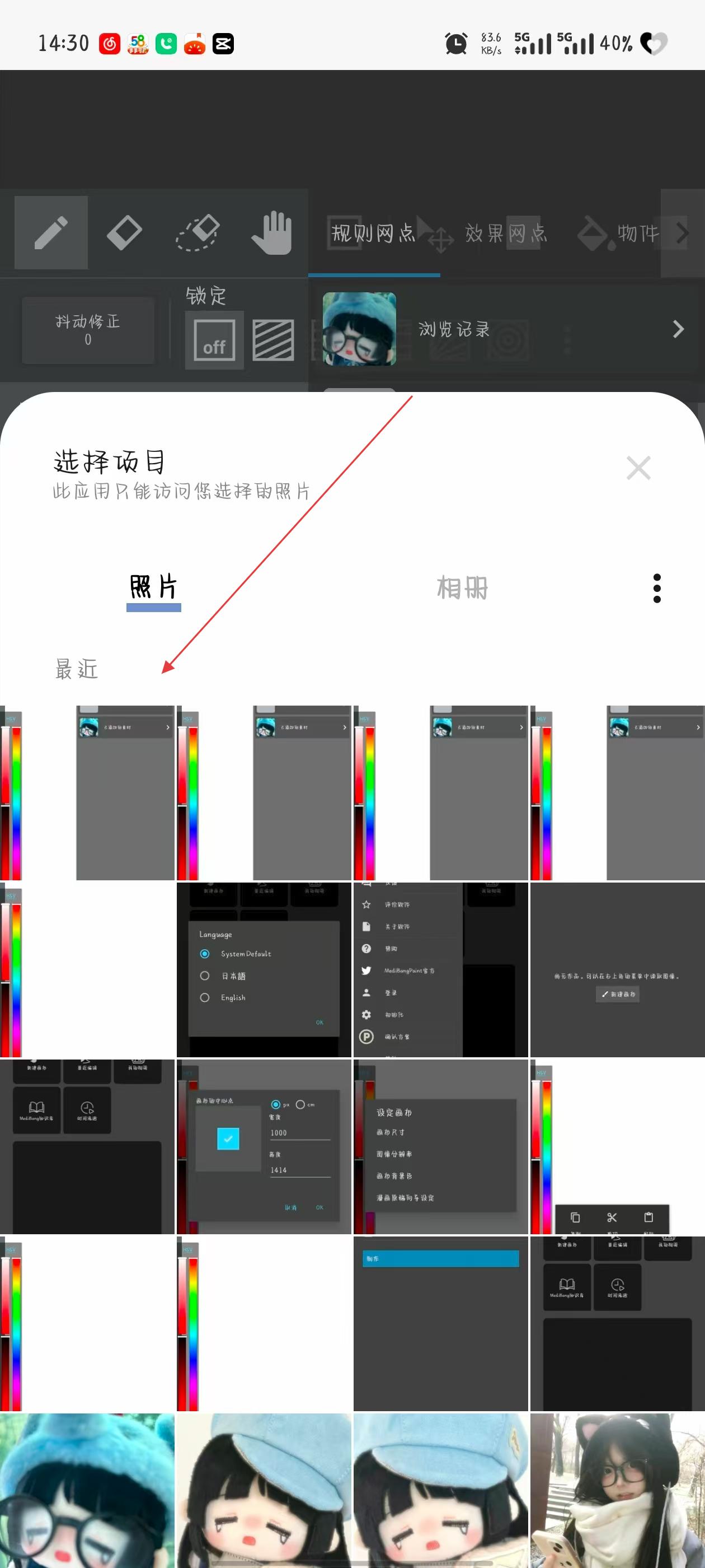4、在照片選擇界面中,找到并點(diǎn)擊需要添加的素材圖片,即可將該圖片導(dǎo)入到Medibang Paint的素材庫(kù)中。