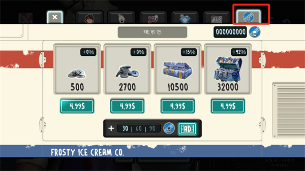 4、可以切換到最后的一個購買貨幣的欄目,然后去進行購買,有足夠的貨幣就可以獲得貼紙槍。