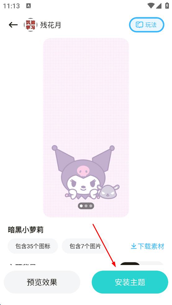 3、進(jìn)入主題詳情頁面后,點(diǎn)擊下方“安裝主題”按鈕,按照軟件提示完成后續(xù)操作,即可將選中的主題安裝到設(shè)備中。