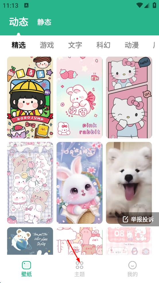 1、打開壁紙軟件,在底部導(dǎo)航欄找到“主題”選項(xiàng)并點(diǎn)擊,進(jìn)入主題展示頁面,可看到多種風(fēng)格的主題,如帶有卡通形象的主題等。