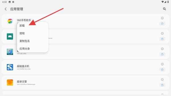 3、點(diǎn)擊后,會(huì)彈出菜單欄,再點(diǎn)擊卸載的功能按鈕。