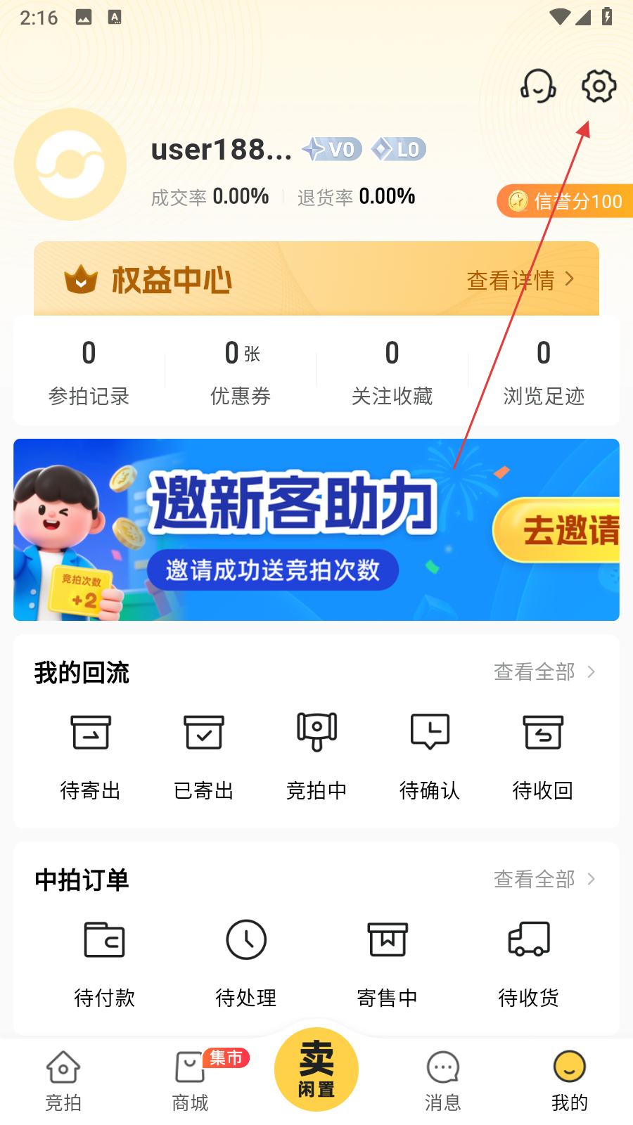 2、在個(gè)人頁面中,點(diǎn)擊右上角的設(shè)置圖標(biāo),進(jìn)入賬戶設(shè)置界面。