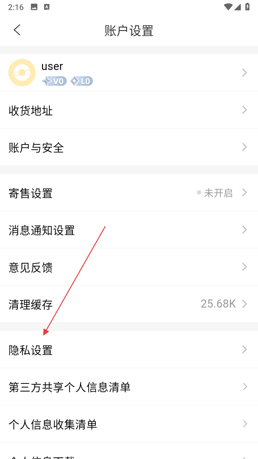 3、在賬戶設(shè)置界面里,找到隱私設(shè)置選項(xiàng)并點(diǎn)擊,進(jìn)入隱私設(shè)置頁面。