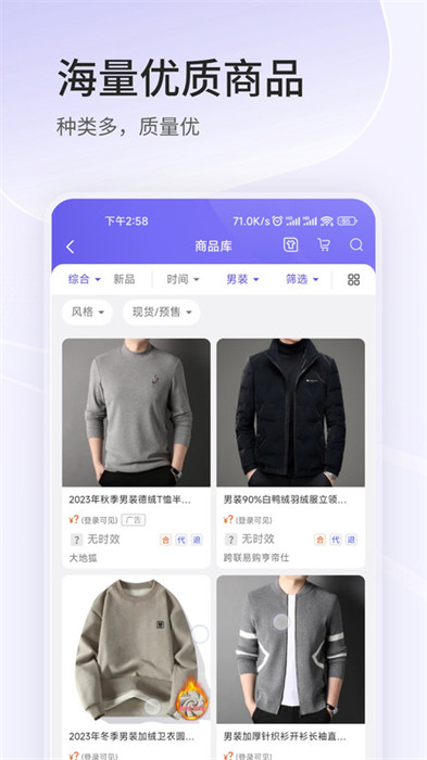1、通過平臺可以輕輕松松的選款式并且拿貨,能夠享受到十分便捷的體驗;