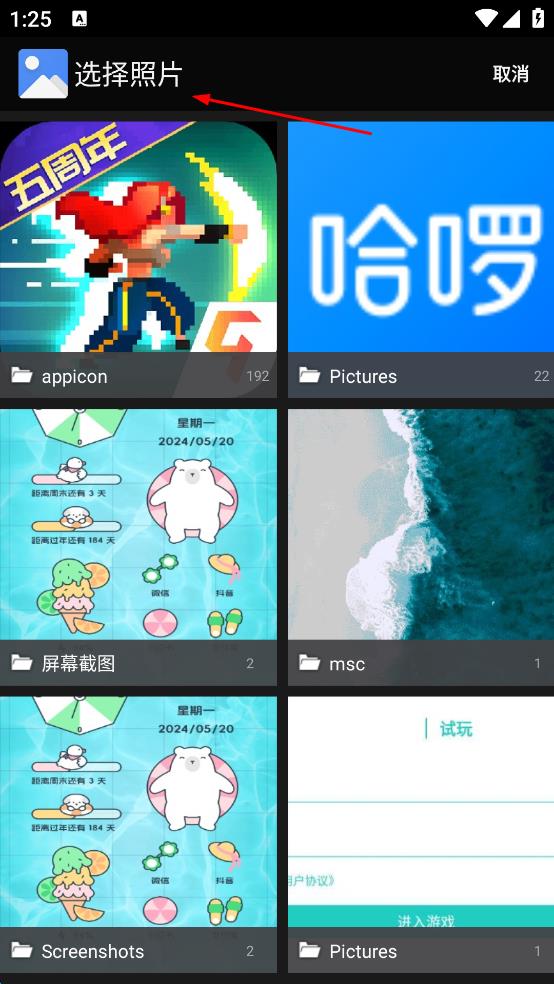 2、在選擇照片頁面,瀏覽手機(jī)中的照片,找到自己想要設(shè)置的那張照片,點擊該照片,準(zhǔn)備將其應(yīng)用到軟件界面。