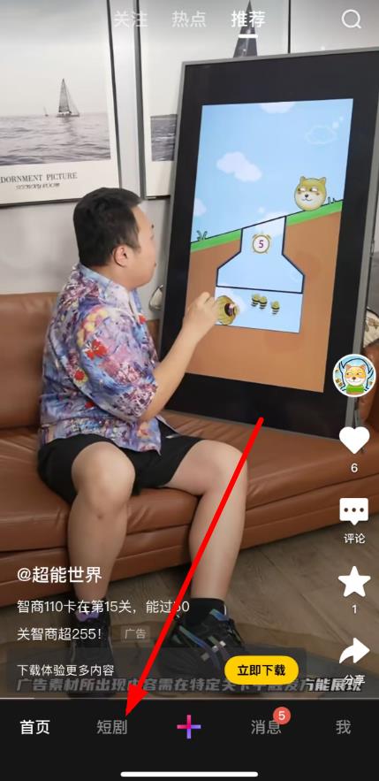 1、進(jìn)入到軟件的首頁之后可以看到推薦的短視頻,還能夠進(jìn)行點(diǎn)贊和評(píng)論等互動(dòng);