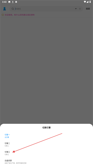 3、點(diǎn)擊后,當(dāng)界面顯示切換引擎三表示已切換成功。