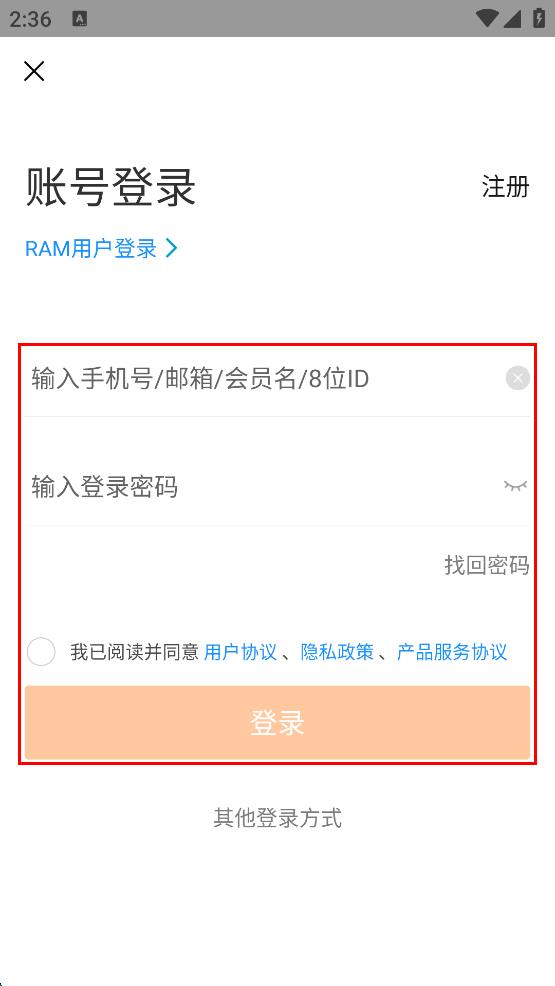 4、在賬號登錄頁面輸入手機號或郵箱等賬號信息,輸入登錄密碼,勾選已閱讀并同意相關協(xié)議,點擊登錄按鈕完成登錄。