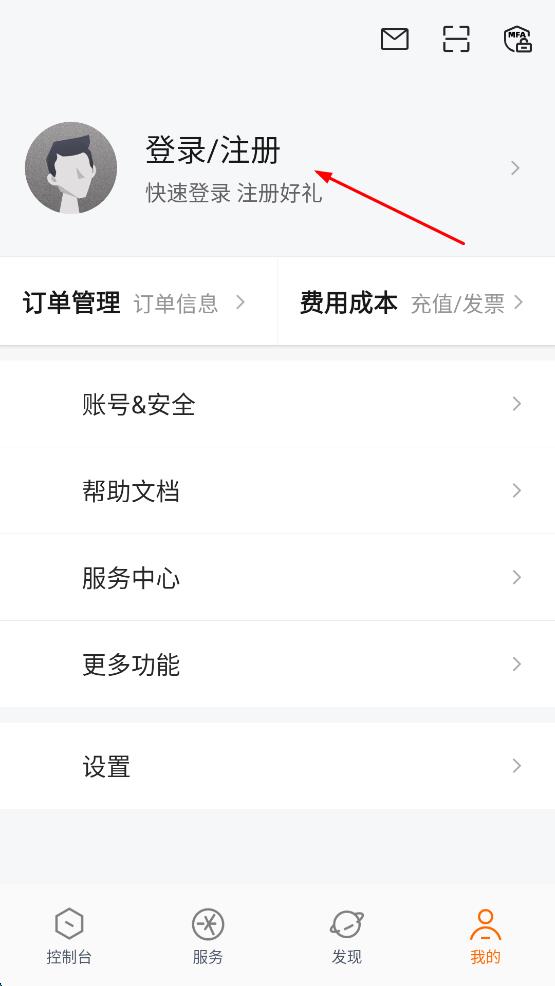 3、在個人相關頁面點擊登錄/注冊選項,進入賬號登錄頁面。