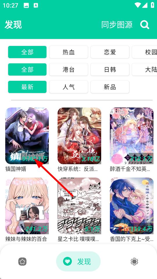 1、打開云漫app,進(jìn)入發(fā)現(xiàn)頁面,選擇想要觀看的漫畫,例如鎮(zhèn)國神婿。