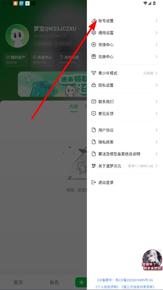 1.打開造夢(mèng)次元APP,點(diǎn)擊右下角我進(jìn)入個(gè)人中心。