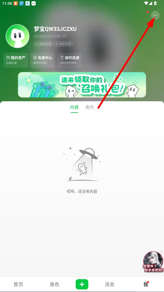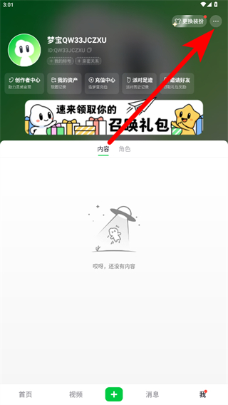 2.在個(gè)人中心界面,點(diǎn)擊右上角的三個(gè)點(diǎn)圖標(biāo),展開功能菜單。