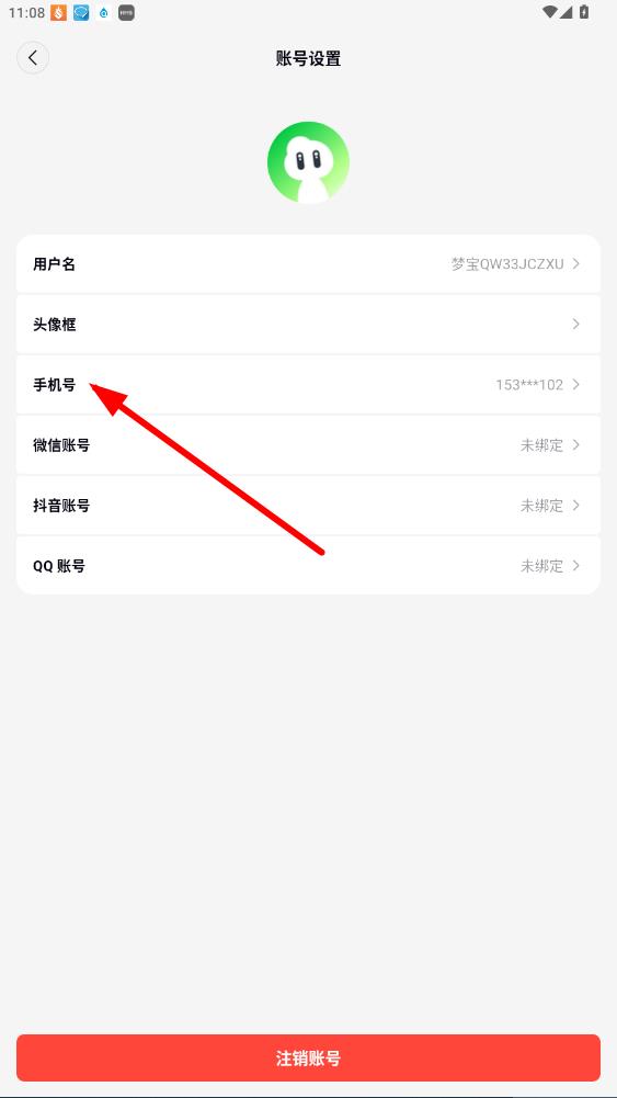 4、在賬號(hào)設(shè)置頁面里,找到手機(jī)號(hào)選項(xiàng),點(diǎn)擊右側(cè)箭頭按提示修改手機(jī)號(hào)。