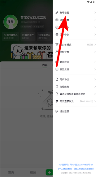 3.進(jìn)入功能菜單后,點(diǎn)擊賬號(hào)設(shè)置選項(xiàng)。