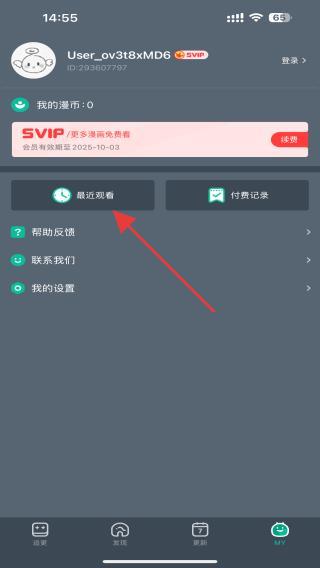 2、在個人中心頁面,用戶需點擊最近觀看的功能按鈕。