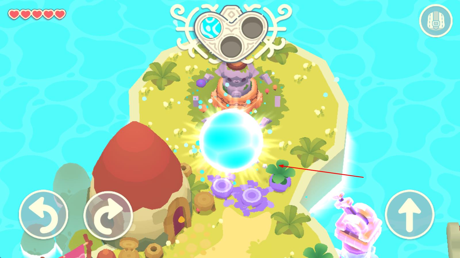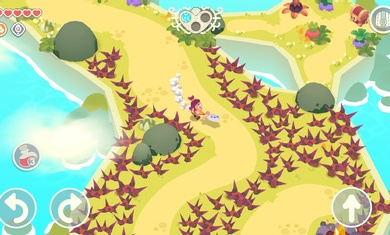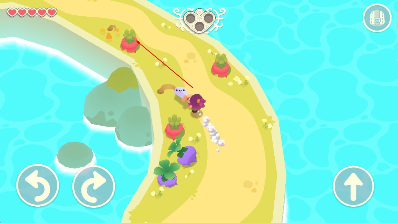 2、在游戲場景的路徑中,操控角色朝著紅色箭頭指向的植物方向移動,靠近該植物。