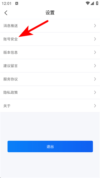 3、在設(shè)置的頁面,點(diǎn)擊賬號安全按鈕,進(jìn)入賬號與安全的頁面。