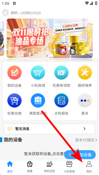 1、在我的小松的首頁,點(diǎn)擊底部我的按鈕,進(jìn)入個人功能頁面。
