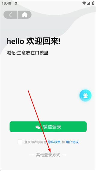 3、進(jìn)入登錄頁面,找到并點(diǎn)擊下方其他登錄方式。
