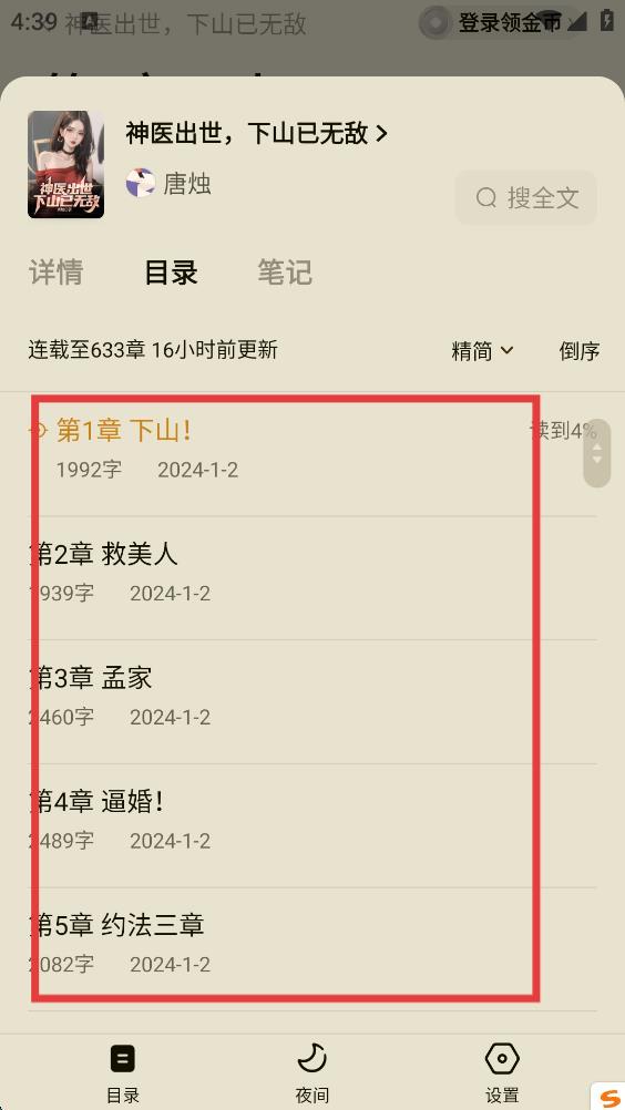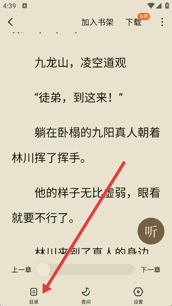 3、打開目錄界面,即可查看小說目錄并選擇章節(jié)。