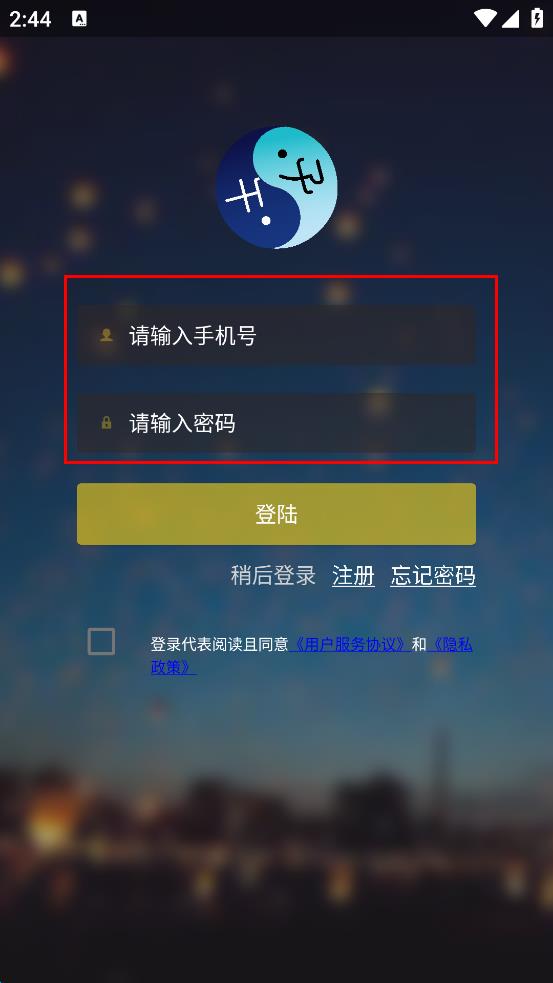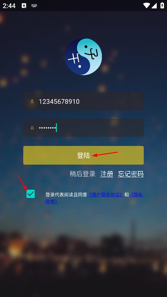 4、勾選登錄代表閱讀且同意用戶服務(wù)協(xié)議和隱私政策,然后點擊下方的“登錄”按鈕,完成登錄操作。