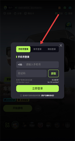 2、登錄窗口中選擇“手機號或賬號登錄”,進入手機號登錄界面。