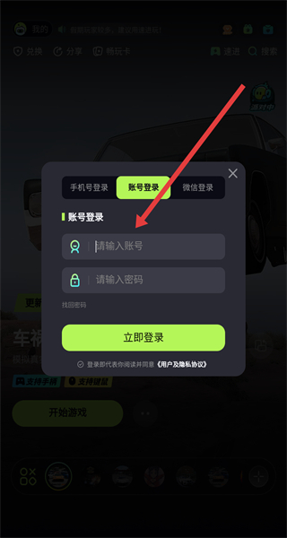 4、在賬號登錄界面輸入賬號和密碼,勾選同意用戶及隱私協(xié)議后點擊“立即登錄”,完成賬號登錄操作。