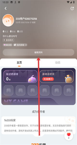 2、在進入到我的主頁后,可以通過點擊編輯資料按鈕,進行修改個人信息操作。