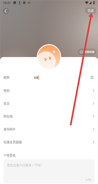 4、在完成對昵稱的修改后,點擊右上角完成按鈕,即可完成編輯修改操作。