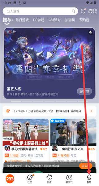 1、進(jìn)入首頁(yè)后我們可以看到各種不同類型的游戲,在【233派對(duì)】中平臺(tái)為玩家們帶來(lái)了可互動(dòng)的派對(duì)玩法;