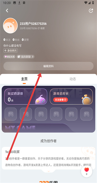 2、在個(gè)人主頁(yè)中,可以點(diǎn)擊編輯資料,進(jìn)行修改資料信息操作。