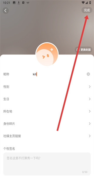 4、在輸入新昵稱后,點(diǎn)擊上方完成按鈕,即可保存新昵稱完成修改。