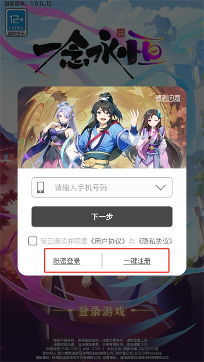 1、進(jìn)入游戲后將會看到支持賬號密碼登錄,或者一鍵注冊登錄,新手需要選擇一鍵注冊進(jìn)行登錄;