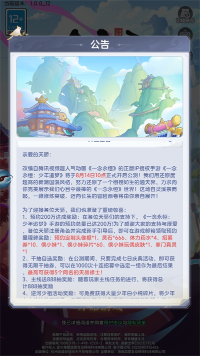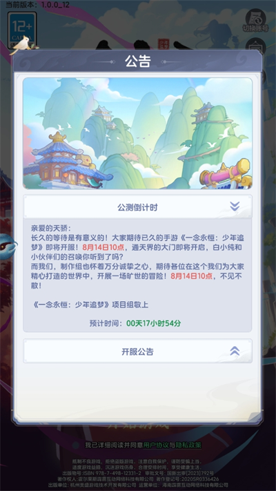 4、由于是預(yù)下載可以看到現(xiàn)在的公告信息,了解如今該游戲的公測倒計(jì)時(shí),在8月14日10點(diǎn)正式開服;