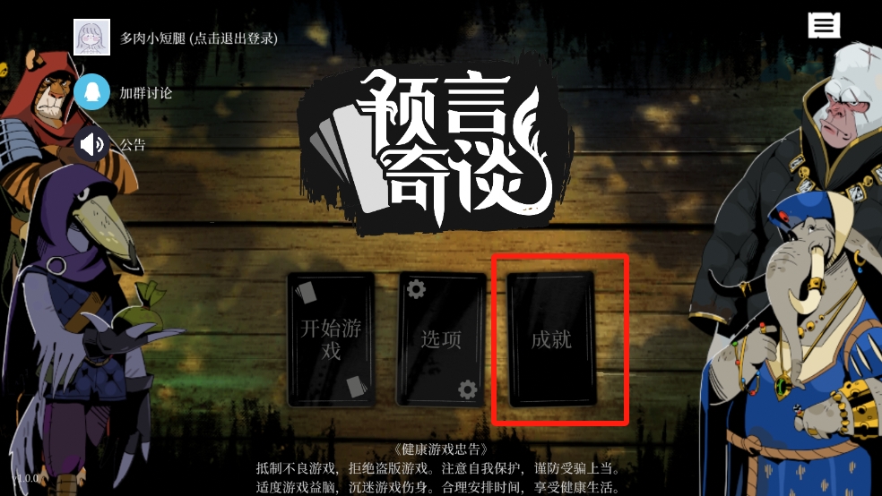 1、進入游戲后可以看到有多個選項可以選擇,比如在成就這里可以了解有哪些成就任務;