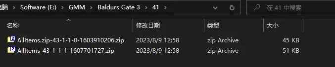 3、如果遇到這個問題需要將壓縮包拖入管理器中,這樣就會正常自動的識別到mod類型。