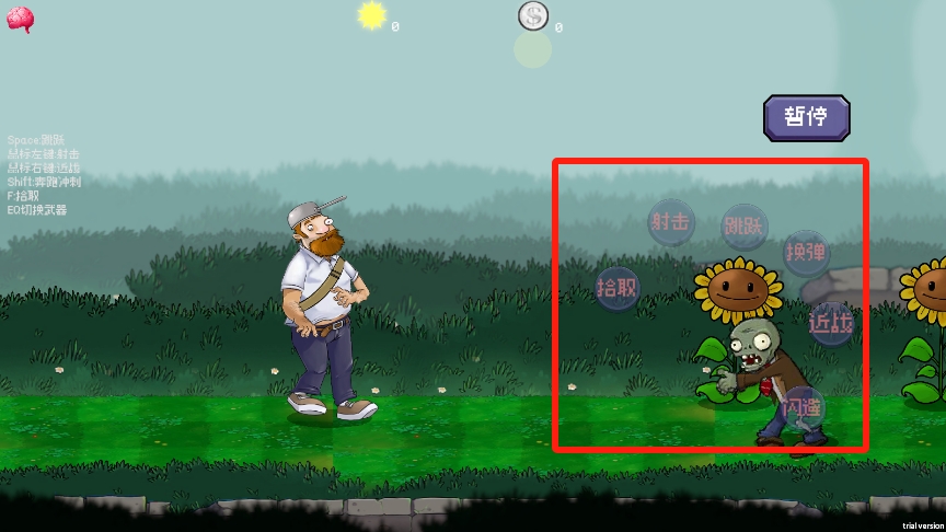 3、僵尸來了在這里可以進(jìn)行戴夫的控制,小心僵尸們非常厲害一下就能傷到自己;