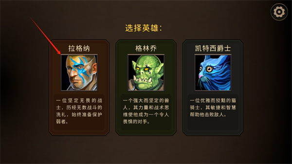1、在進(jìn)入戰(zhàn)斗之前需要先選擇一個(gè)作戰(zhàn)英雄,這里小編以第一個(gè)【拉格納】英雄為例點(diǎn)擊選擇,操控這個(gè)英雄進(jìn)入戰(zhàn)場(chǎng)里面戰(zhàn)斗;