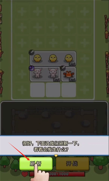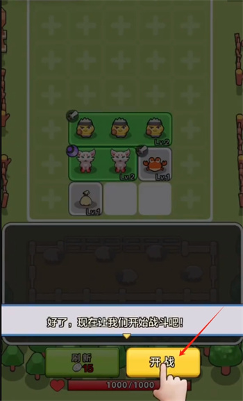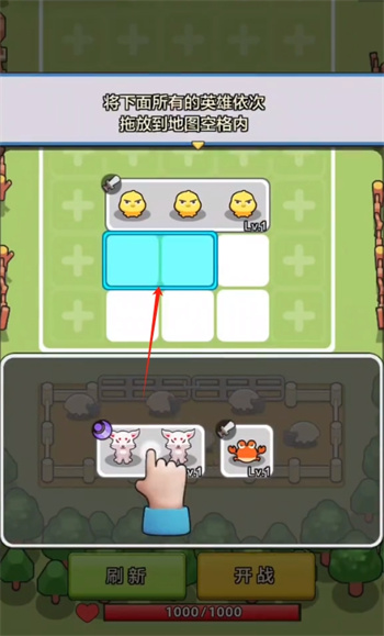 1、前往有趣的防塔搭配策略對戰(zhàn)中,點擊選擇下方的不同小怪物,將下方的小動物拖動在上方不同空格位置之上,組建出一個自己的應(yīng)戰(zhàn)隊伍;