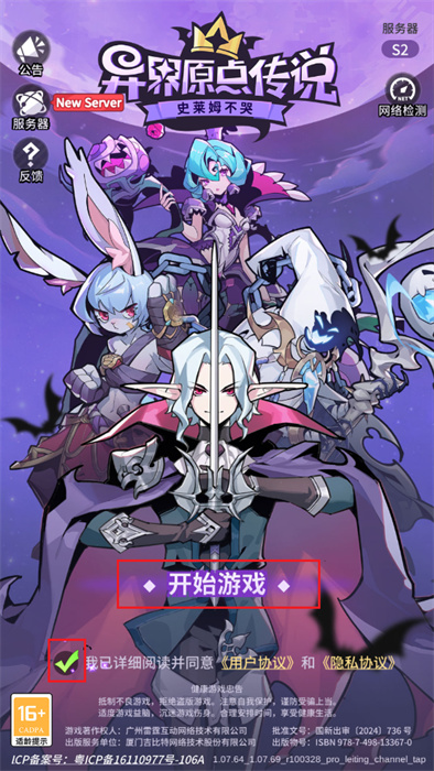 1、進(jìn)入到游戲的場(chǎng)景內(nèi)之后,玩家將需要點(diǎn)擊屏幕之中的【開始游戲】按鈕,還需要點(diǎn)擊下方紅色小框框內(nèi)的圓形按鈕;