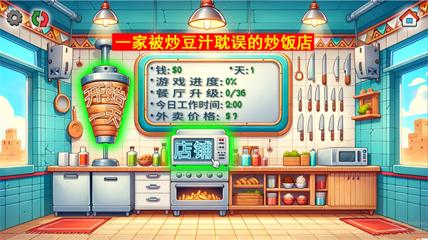 2、然后在店鋪中間就可以看到店鋪的名字叫:一鍵被炒豆汁耽誤的炒飯店,點(diǎn)擊下方的【開(kāi)始一天】就可以開(kāi)啟挑戰(zhàn);