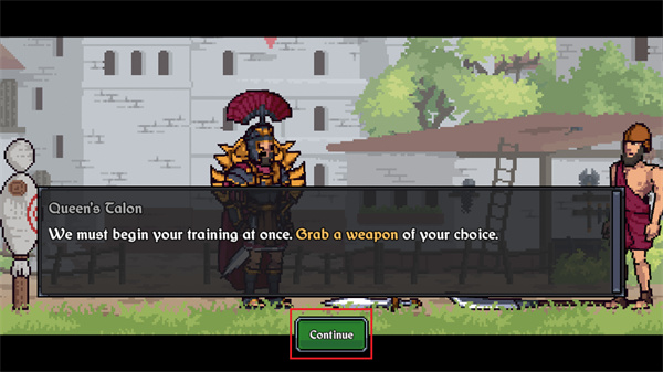 1、進入到游戲的場景內(nèi)之后,玩家首先將會看到一段對話,需要點擊對話下方的綠色按鈕來進行對話的推進;