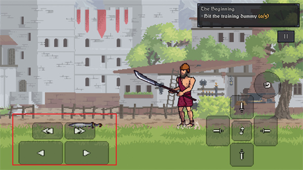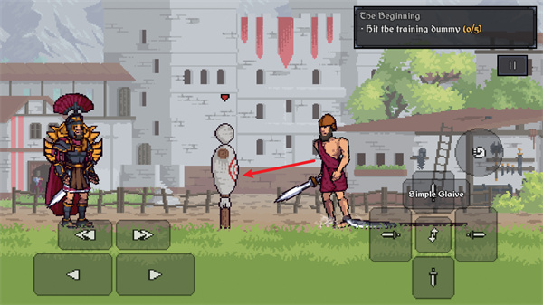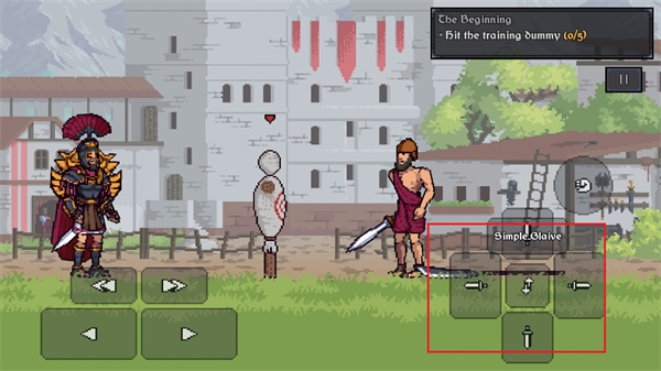 6、點擊屏幕右下角的各個攻擊按鈕,以對自己面前的稻草人實施攻擊。
