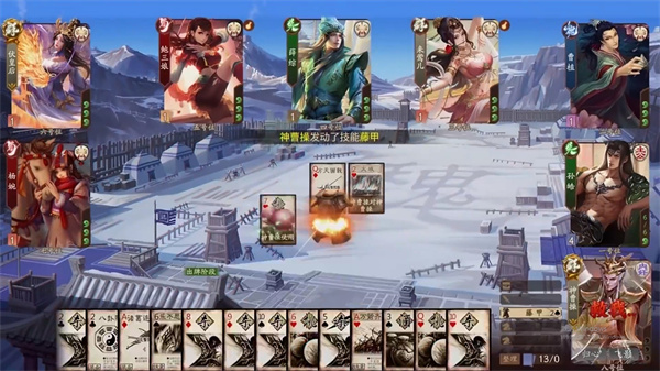 1、面對(duì)著危機(jī)敵人的威脅進(jìn)攻之勢規(guī)劃卡牌應(yīng)對(duì)計(jì)劃,成功將敵方的全部武將都定個(gè)在這個(gè)戰(zhàn)場之上,充滿精彩的三國殺競技對(duì)戰(zhàn);