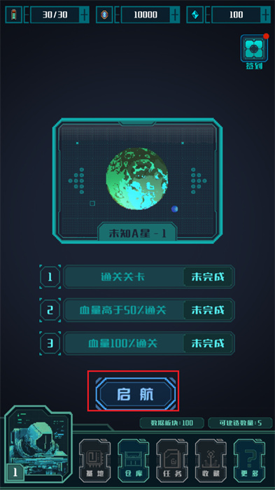 1、點(diǎn)擊屏幕之中的【啟航】按鈕,以正式的開(kāi)啟你的異星球冒險(xiǎn)之旅;