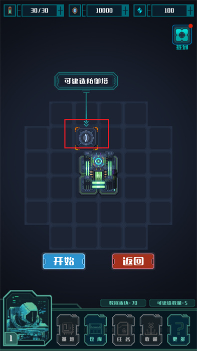 4、隨后,玩家將可以在自己建立的地基版塊上進(jìn)行防御塔的搭建,點(diǎn)擊防御塔的位置即可;